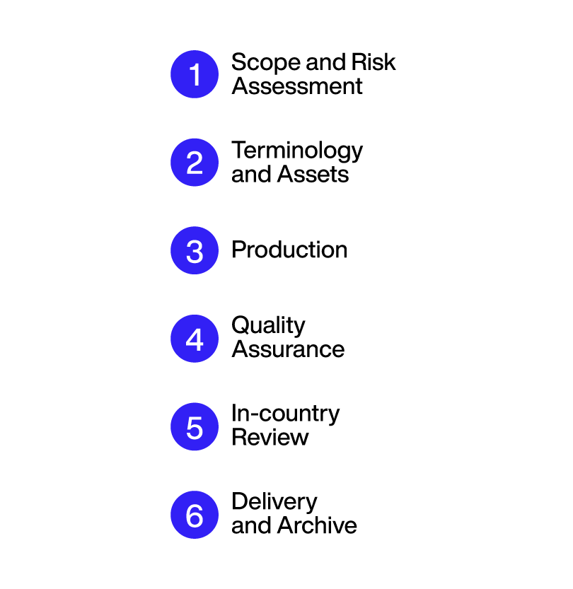 We align service level to content risk, apply controlled terminology, run automated QA checks, and capture feedback so every update improves your terminology assets and translation memory.
